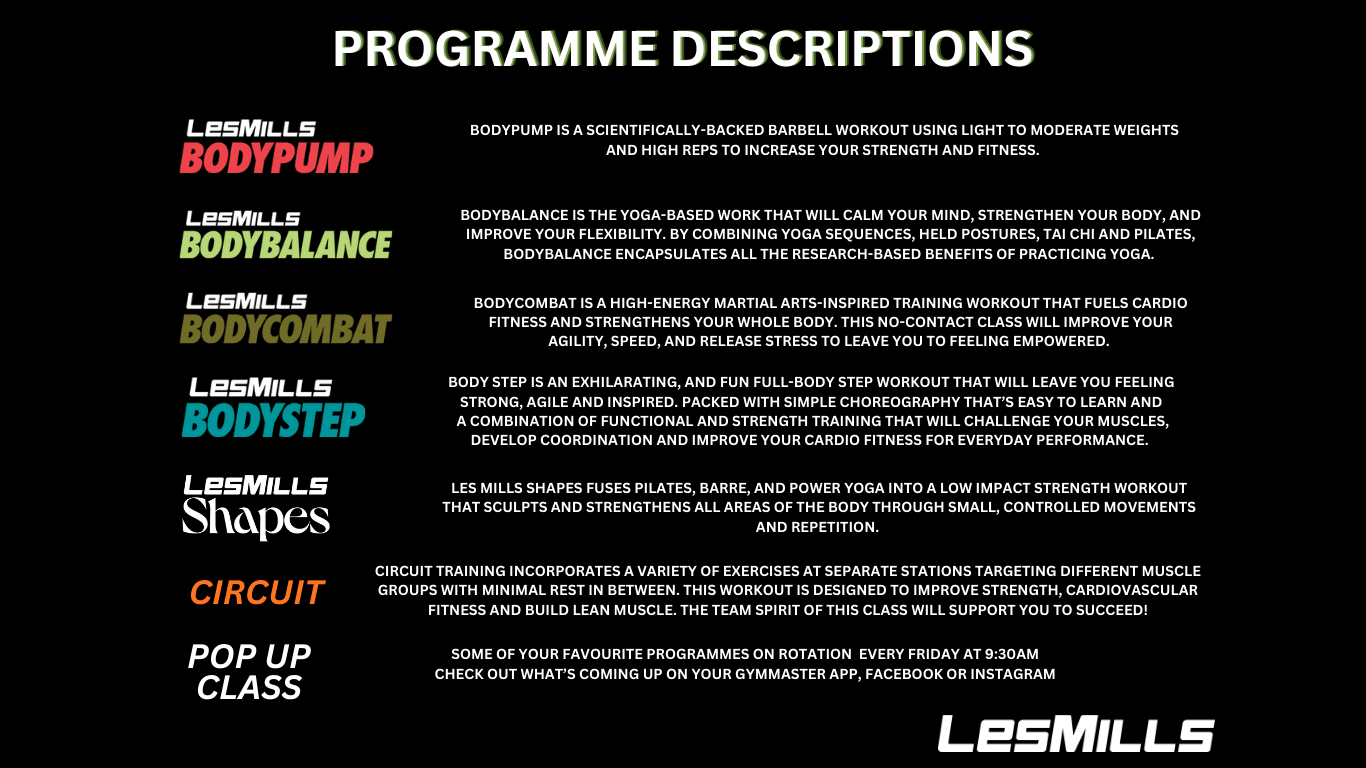 LesMills Group Fitness Class Timetable